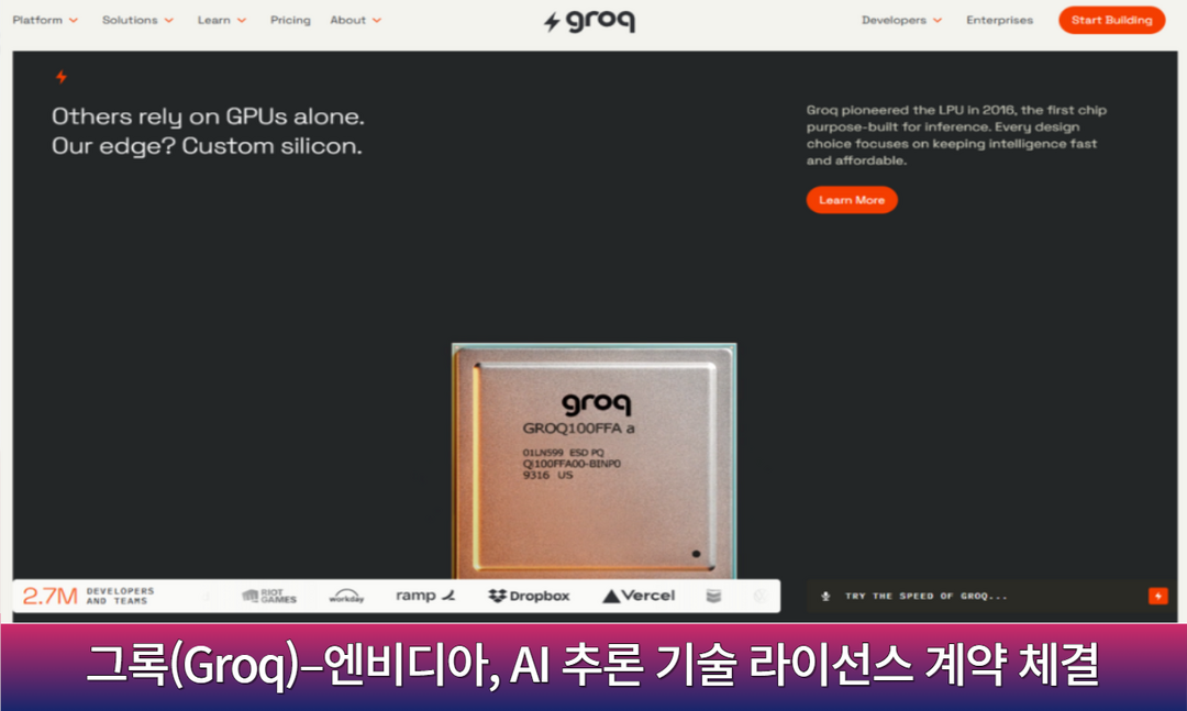 Groq와 NVIDIA는 2025년 12월 24일 AI 추론(inference) 기술에 대한 비독점 라이선스 계약을 맺어, 인수·종속 없이 고성능·저비용 추론의 확산을 공동 추진하기로 했다. 이는 경쟁의 무게중심이 학습(training)보다 서비스 운영비와 지연을 좌우하는 추론 효율로 이동했음을 보여준다. NVIDIA는 GPU 생태계를 유지하면서도 추론 병목을 완화할 선택지를 확보하고, Groq는 특정 파트너에 묶이지 않은 채 플랫폼 확산 경로를 얻는다. 핵심 인력이 NVIDIA로 합류해 기술 고도화·확장을 지원하되 Groq는 CEO 선임과 GroqCloud 지속으로 독립성을 유지하며, 결과적으로 AI 인프라가 “소유”가 아니라 워크로드별 최적 조합(선택적 결합)으로 진화하는 흐름을 상징한다.