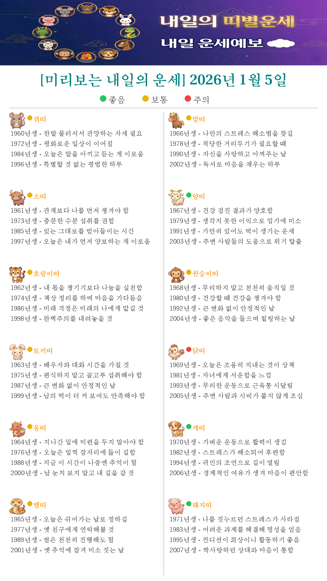 [미리보는 내일의 운세] 2026년 1월 5일