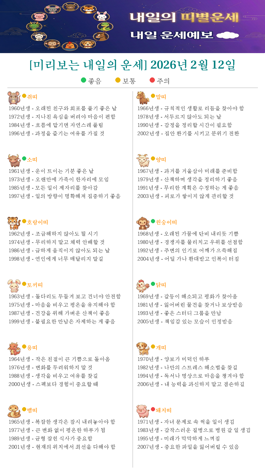 〈퇴근길 미리보는 내일의 띠별운세〉와 함께 내일을 준비한다면,
