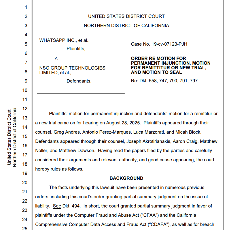 2025년 10월 17일, 미국 법원이 마침내 ‘핸드폰 해킹 프로그램’을 멈춰 세웠다.