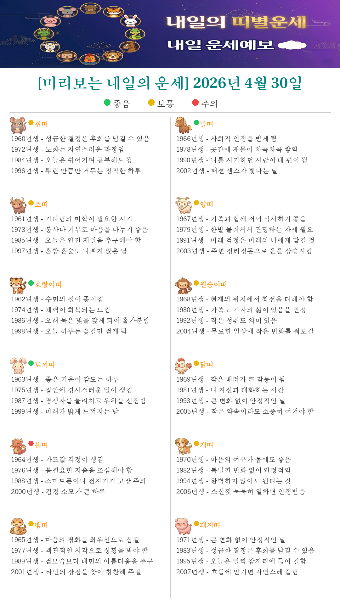 띠별로 간결하게 짚어드립니다.