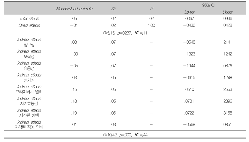 쿠키 및 인터넷 사용기록 제거 의도에 미치는 매개 효과