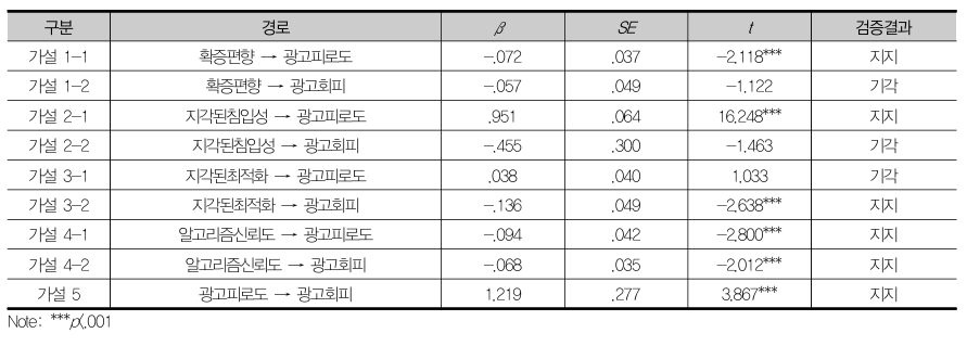 논문이 제시하는 흥미로운 통찰은 '확증편향'에 대한 새로운 해석이다. 일반적으로 미디어 연구에서 알고리즘에 의한 확증편향은 '필터 버블(Filter Bubble)'을 형성하여 정보의 다양성을 해치는 부정적인 개념으로 다루어진다. 그러나 숏폼 광고 환경에서 확증편향은 오히려 광고 피로도를 유의미하게 감소시키는(β=-.072) 긍정적인 역할을 하는 것으로 나타났다.