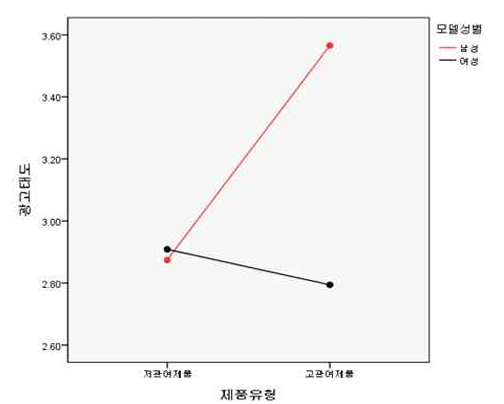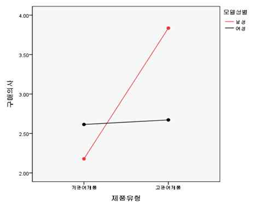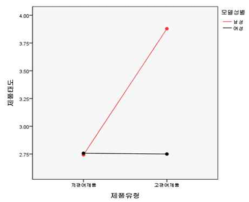 반면, 음료수와 같이 일상적이고 반복적으로 소비되는 저관여 제품 광고에서는 모델의 성별에 따른 효과 차이가 통계적으로 미미하거나 유의미하지 않은 수준으로 나타났다. 저관여 제품의 경우 소비자는 정교한 정보처리보다는 주변 경로를 통해 감정적이고 시각적인 단서에 더 민감하게 반응하기 때문이다. 이러한 맥락에서 모델의 성별 자체가 주는 변별력은 약화되며, 오히려 모델의 외형적 매력, 친밀감, 스타일링 등 시각적 몰입도를 높이는 감각적 요소가 광고 효과를 결정짓는 핵심 변수로 작용한다. 일부 조건에서는 여성 모델이 다소 긍정적인 반응을 보이는 경향도 관찰되었는데, 이는 저관여 제품 특유의 감성적 접근 방식에 부합한 결과로 해석할 수 있다.