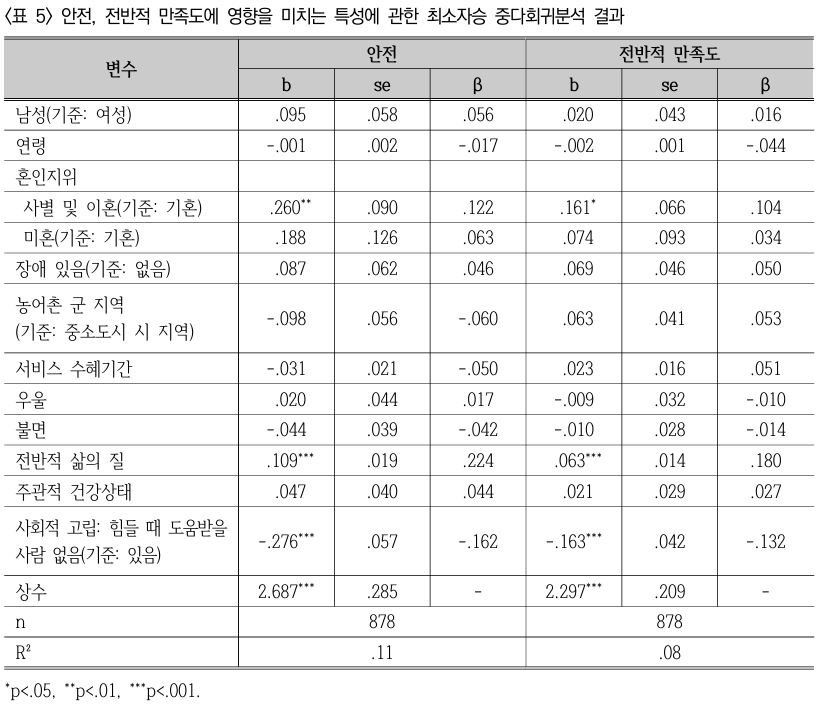 거주 지역에 따른 이용 중단 요인 분석에서는 농어촌(군지역) 거주자가 도시(시지역) 거주자보다 서비스를 중단할 확률이 유의하게 낮았다. 하지만 군지역 이용자들은 서비스를 지속하면서도 안전감 인식은 상대적으로 낮게 나타나는 모순적인 결과를 보였다. 저자는 이를 '만족에 의한 유지'가 아니라 농어촌 지역의 열악한 복지 인프라로 인해 대체할 서비스가 없어 발생하는 '강제적 유지'일 가능성이 높다고 분석했다. 이러한 발견은 행정 데이터상의 높은 유지율이 반드시 높은 만족도를 의미하지 않을 수 있다는 점을 시사하며, 지역적 특성에 맞는 차별화된 운영 모니터링의 필요성을 강조한다.
