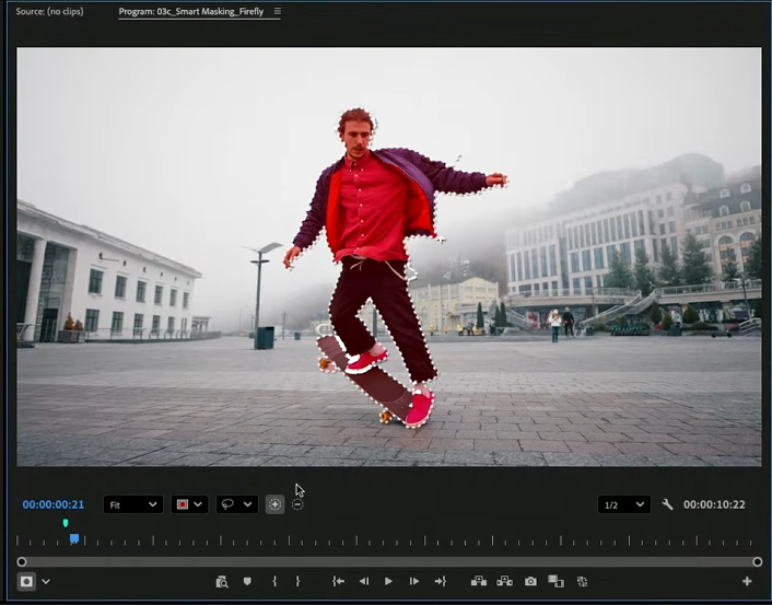 그림. 스케이트보드와 함께 사람의 윤곽이 자동으로 마스킹 되고 있다.(출처:Adobe)
