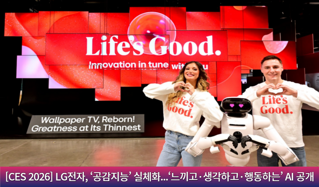 LG전자는 CES 2026에서 ‘공감지능(Affectionate Intelligence)’을 내세워 AI를 제품 기능이 아니라 삶을 대신 ‘판단하고 실행하는 존재’로 재정의하며, 집·차량·TV·엔터테인먼트를 연결한 ‘제로 레이버 홈’ 전략을 제시했다. 홈 로봇 ‘LG 클로이드’가 식사 준비와 세탁·정리까지 수행하는 시연으로 가사 노동 대체를 보여줬고, AI 냉장고·워시타워 등 가전은 ThinQ ON으로 통합돼 사용 패턴에 맞춰 선제적으로 작동한다. 차량은 투명 OLED·인캐빈 센싱으로 맞춤 정보와 안전을 강화하며, TV는 α11 AI 프로세서 3세대와 webOS 기반 개인화 추천으로 경험을 확장해 ‘AI가 생활 부담을 실제로 덜어준다’는 메시지를 강조했다.