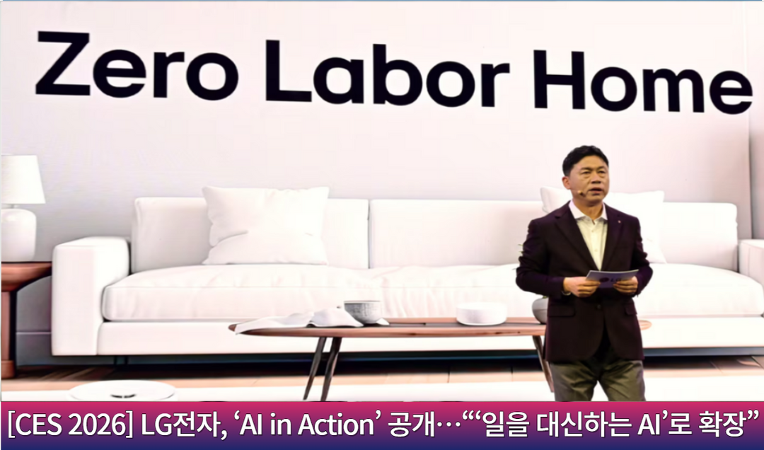 LG전자는 CES 2026에서 ‘제로 레이버 홈’ 비전을 실물 시연으로 공개하며, AI가 직접 보고 판단해 움직이는 ‘물리적 AI’ 단계에 진입했음을 강조했다. 홈 로봇 ‘LG 클로이드’는 식사 준비와 세탁·정리 등 집안일을 수행하고, 카메라·센서·생성형 AI 음성 인터페이스로 사용자와 환경을 학습해 ThinQ/ThinQ ON과 연동된 가전을 통합 제어한다. 또한 VLM·VLA 기반 인지→행동 기술과 로봇 핵심 부품 브랜드 ‘AXIUM’ 공개로 로보틱스 확장 전략도 제시했다.