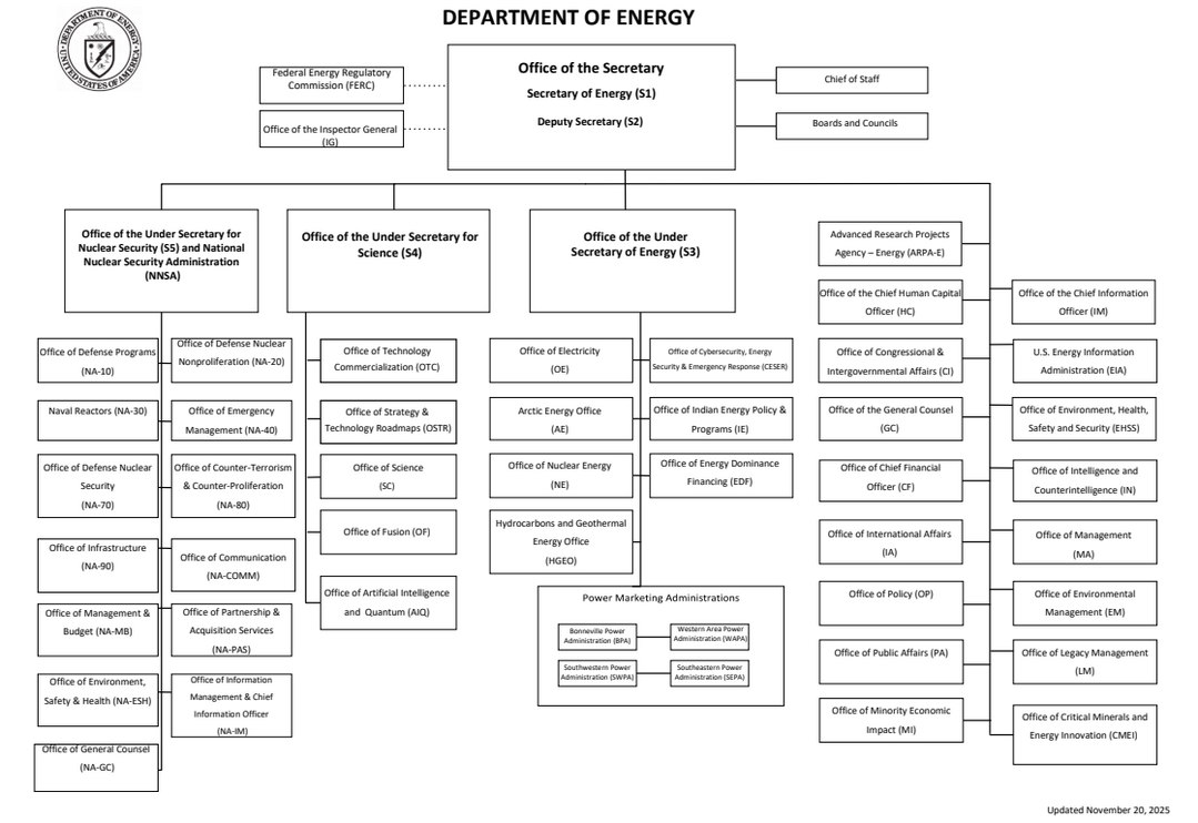미국 에너지부(U.S. Department of Energy, DOE)가 11월 20일(현지시간) 트럼프 대통령의 ‘미국 에너지 패권(American Energy Dominance)’ 전략을 실행하기 위한 전면적인 조직 개편을 공식 발표했다.