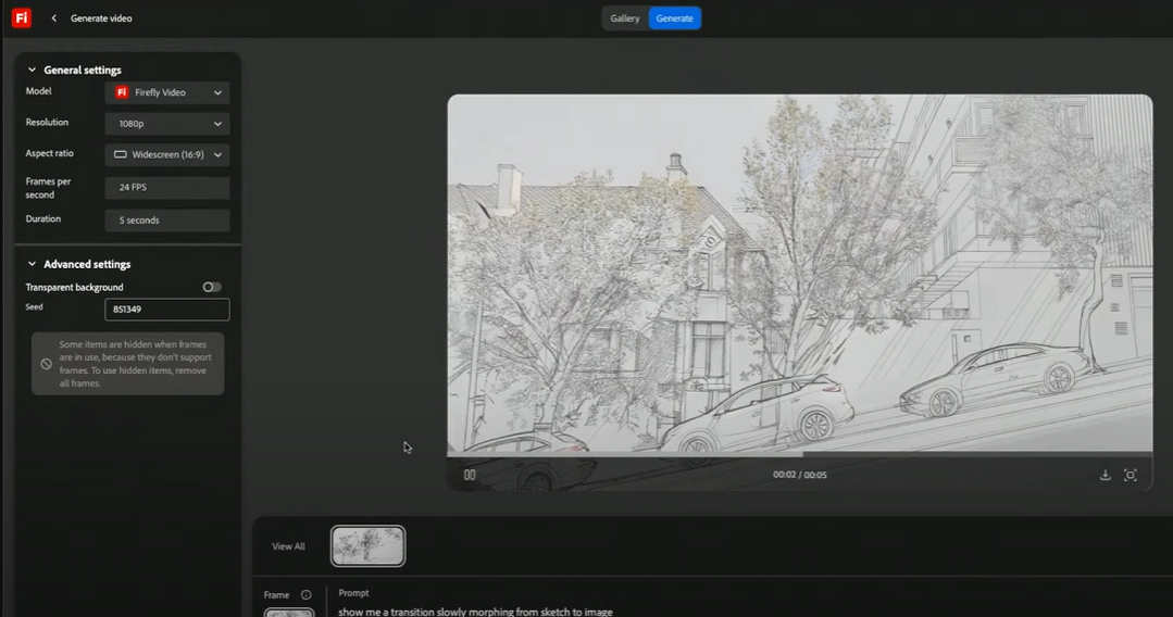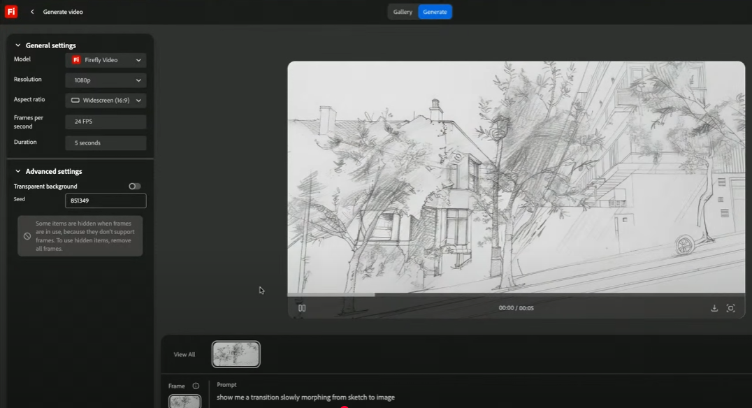 - AI 생성 비디오 전환: 이미지를 기반으로 “스케치에서 실사영상으로 천천히 모핑되는 전화”처럼 프롬프트를 입력하여 독특한 맞춤형 비디오 트랜지션을 생성할 수 있다.