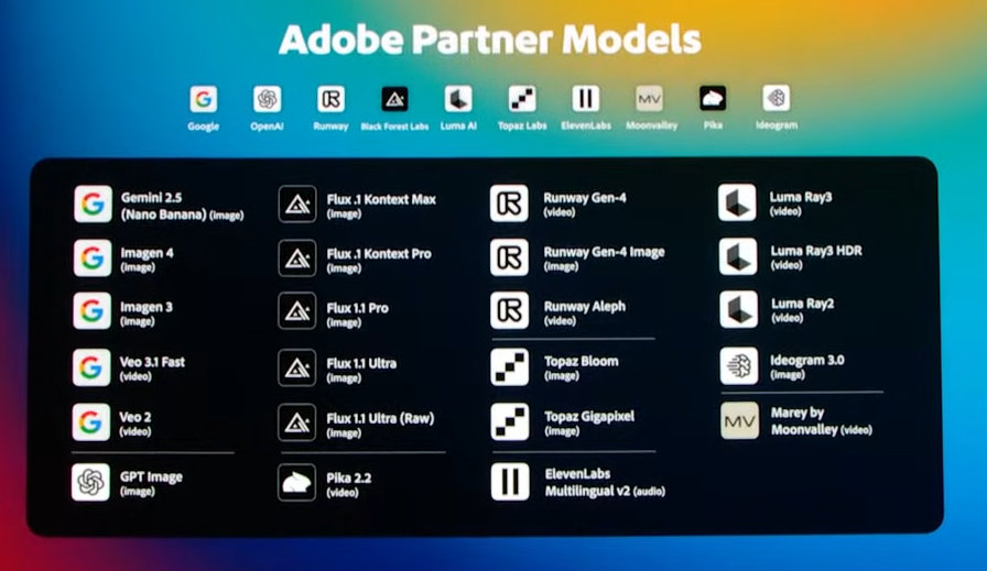 그림. 어도비와 파트너십이 체결된 인공지능 모델들.(출처: Adobe)